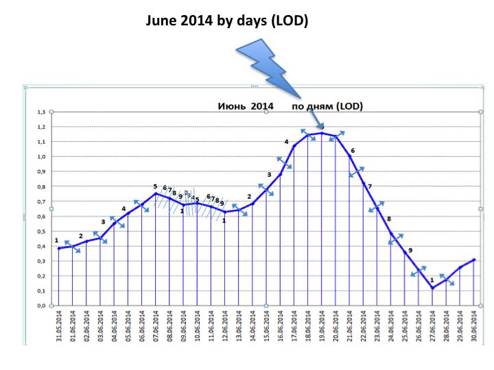 Let us enlarge the part of the graph, which is closer in time to the inversion of the magnetic field on the Sun in 2013.