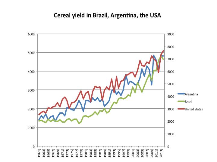 We will recheck this by comparing cereal growth in the world (matches cereal growth in the USA) with the growth in Argentina and Brazil where the magnetic field intensity is much lower.