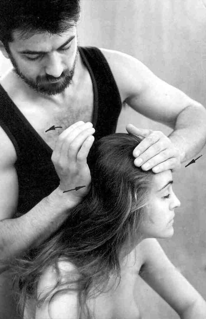 Такие поглаживающие движения вверх необходимо достаточно долго, одновременно вслушиваясь в свои первые ощущения в ладонях и запоминая их: хорошо ли скользят руки. Через некоторое время поменяйте направление движения рук и вновь вслушайтесь в ощущения. Чтобы проверить себя, держите контакт с пациентом – спросите его, как ему приятней: вверх или вниз. Таким образом, со временем вы безошибочно сможете самостоятельно определять доминирующие движения рук в массаже с данным пациентом. Как правило, люди со склонностью к повышенному давлению любят, чтобы их гладили вниз, к пониженному – вверх.