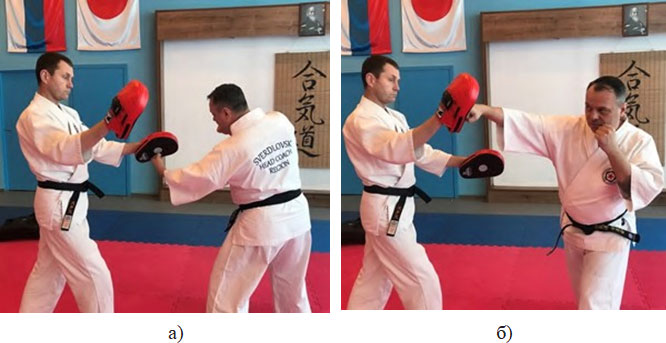 Рис. 10. Тренировка ударов по лапам, где: а) нижний уровень; б) верхний уровень