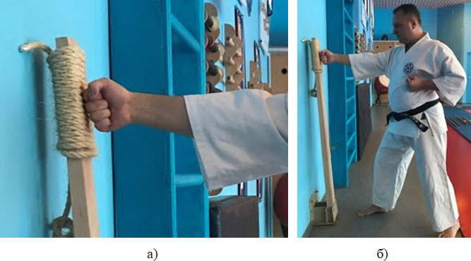 Рис. 8. Использование макивары для тренировки ударов Екомен-учи