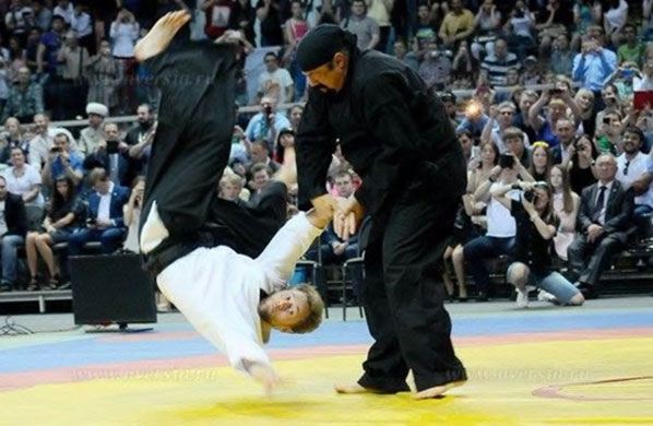 Выполняется блокировка локтей, выкручивание шеи за челюсть, Ирими-наге в горло (рис. 39).