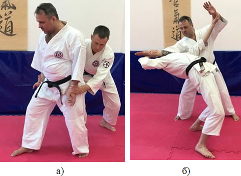 Рис. 41. Кокю-хо от захвата Уширо-рёте-дори, где: а) захват Уширо-рёте-дори; б) Кокю-хо