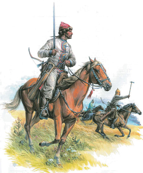 Козары, или Хазары, единоплеменные с Турками, издревле обитали на западной стороне Каспийского моря. Еще с третьего столетия они известны по Арменским летописям: Европа же узнала их в четвертом веке вместе с Гуннами, между Каспийским и Черным морем, на степях Астраханских. Аттила властвовал над ними: Болгары также, в исходе V века; но Козары, все еще сильные, опустошали между тем южную Азию, и Хозрой, Царь Персидский, должен был заградить от них свои области огромною стеною, славною в летописях под именем Кавказской и доныне еще удивительною в своих развалинах. В VII веке они являются в Истории Византийской с великим блеском и могуществом, дают многочисленное войско в помощь Императору; два раза входят с ним в Персию, нападают на Угров, Болгаров, ослабленных разделом сыновей Кувратовых, и покоряют всю землю от устья Волги до морей Азовского и Черного, Фанагорию, Воспор и большую часть Тавриды, называемой потом несколько веков Козариею. Слабая Греция не смела отражать новых завоевателей: ее Цари искали убежища в их станах, дружбы и родства с Каганами; в знак своего к ним почтения украшались в некоторые торжества одеждою Козарскою и стражу свою составили из сих храбрых Азиатцев. Империя в самом деле могла хвалиться их дружбою; но, оставляя в покое Константинополь, они свирепствовали в Армении, Иверии, Мидии; вели кровопролитные войны с Аравитянами, тогда уже могущественными, и несколько раз побеждали их знаменитых Калифов.