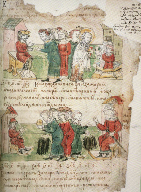 Нестор пишет, что Славяне издревле обитали в странах Дунайских и, вытесненные из Мизии Болгарами, а из Паннонии Волохами (доныне живущими в Венгрии), перешли в Россию, в Польшу и другие земли. Сие известие о первобытном жилище наших предков взято, кажется, из Византийских Летописцев; однако ж Нестор в другом месте говорит, что Св. Апостол Андрей – проповедуя в Скифии имя Спасителя, доходил до Ильменя и нашел там Славян: следственно, они жили в России уже в первом столетии.