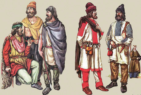 Ослепленные безрассудным корыстолюбием, они искали мнимых сокровищ в Греции, имея в стране своей, в Дакии и в окрестностях ее, истинное богатство людей: тучные луга для скотоводства и земли плодоносные для хлебопашества, в коем они издревле упражнялись. Думают, что Славяне узнали скотоводство только в Дакии; но сия мысль кажется неосновательною. Будучи в северном своем отечестве соседями народов Германских, Скифских и Сарматских, богатых скотоводством, Славяне, долженствовали издревле ведать сие важное изобретение человеческого хозяйства. Пользуясь уже тем и другим, они имели все нужное для человека; не боялись ни голода, ни свирепостей зимы: поля и животные давали им пищу и одежду. В VI веке Славяне питались просом, гречихою и молоком; а после выучились готовить разные вкусные яства. Мед был их любимым питьем: вероятно, что они сначала делали его из меду лесных, диких пчел; а наконец и сами разводили их. Венеды, по известию Тацитову, не отличались одеждою от Германских народов, т. е. закрывали наготу свою. Славяне в VI веке сражались без кафтанов, некоторые даже без рубах, в одних портах. Кожи зверей, лесных и домашних, согревали их в холодное время. Женщины носили длинное платье, украшаясь бисером и металлами, добытыми на войне или вымененными у купцев иностранных.