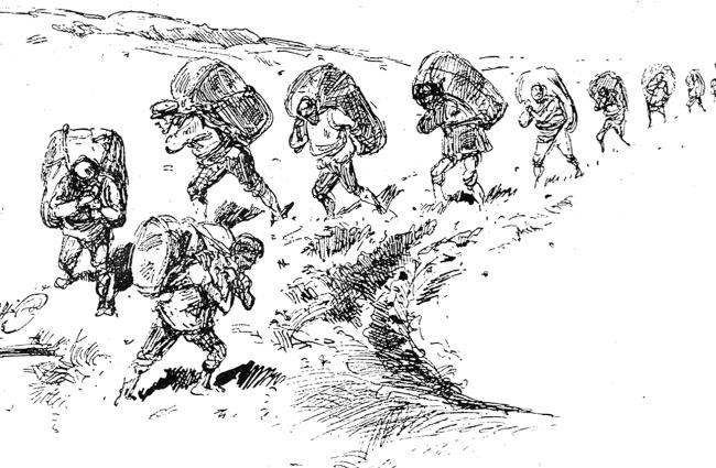 Обошел муравей по дну вокруг, кое-как с трудом, наверх выбрался, глядит вниз, раздумывает, а тут другие мураши-товарищи, кто с ношею, кто порожнем ползут…