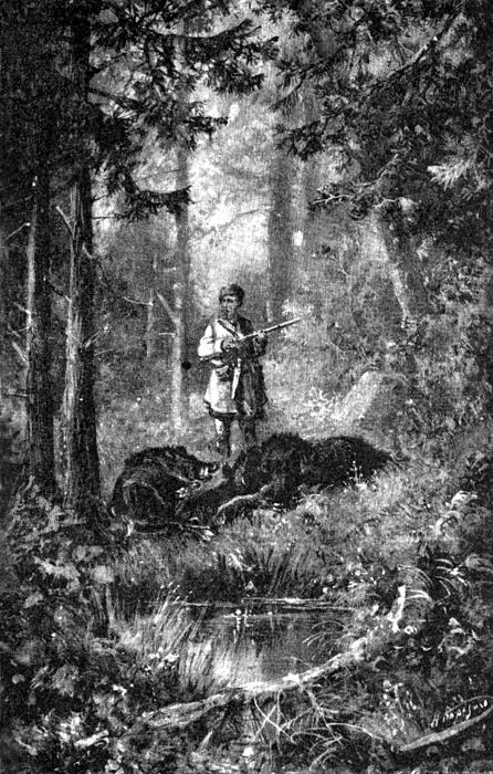Грохнул второй удар, вторая молния блеснула… завизжал кабан, скакнул, как змеею ужаленный, и рядом с медведем протянулся…