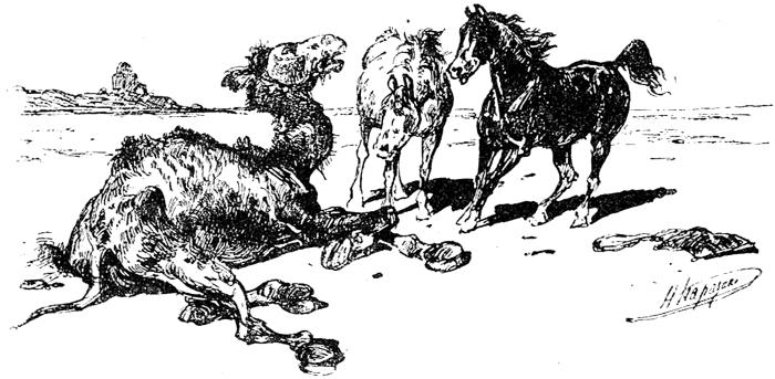 Раз как-то, резвясь и прыгая, набежали они на старого-престарого, умирающего верблюда. Безобразное, исхудалое животное кротко взглянуло на них своими уже потухающими глазами и проговорило:
