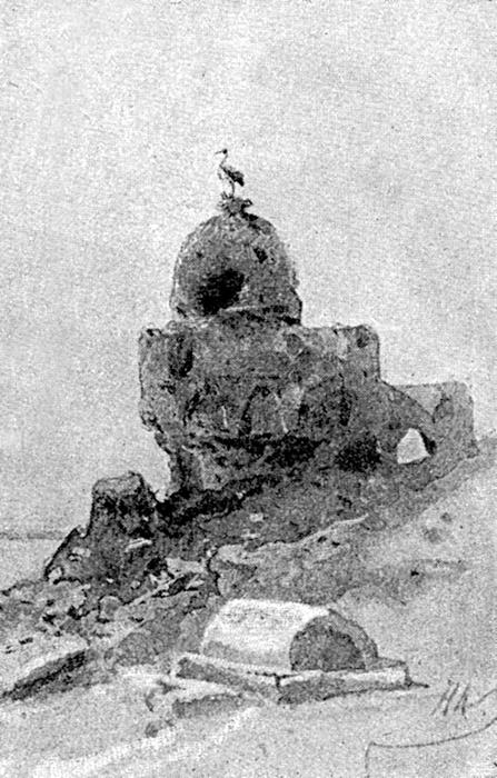 Еще солнце не совсем поднялось на полдень, увидали они забытую могилу, а на ней, на вершине косматого гнезда, давно уже сидел долгоносый аист, поджидая наших лошадок.