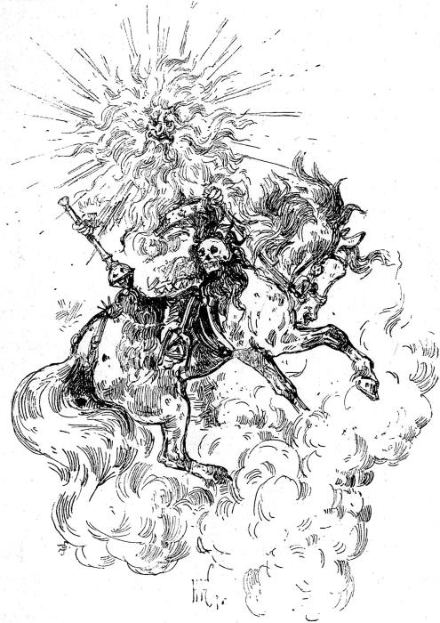 Едет Голод, костяк костяком: очи провалились, зубы оскалены – и едет на тощем-претощем верблюде, кожа да кости… Едет и сестрица его Жажда, телом вся в брата, а сидит, еле держится, на тощем осле-ишаке.