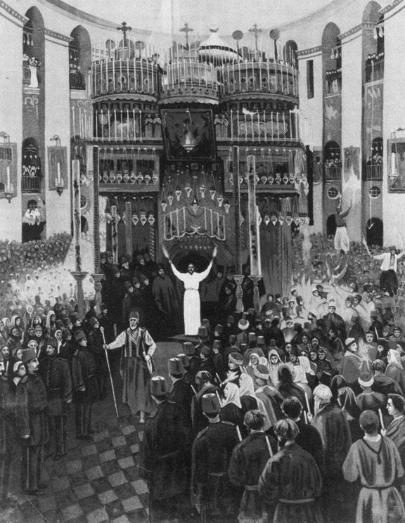 Паломники встречают Благодатный Огонь (старинный рисунок)