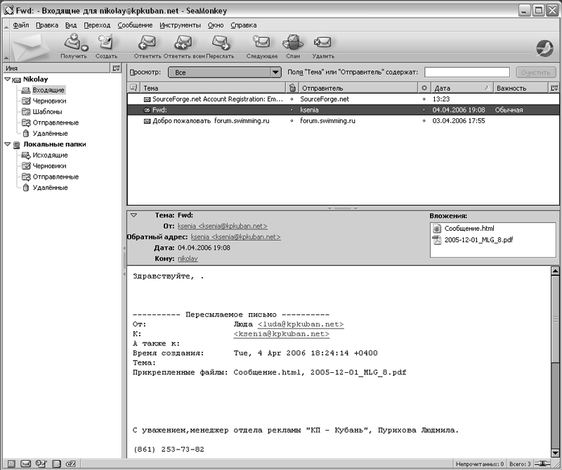 Рис. 1.3. Почтовый клиент интегрированного пакета SeaMonkey