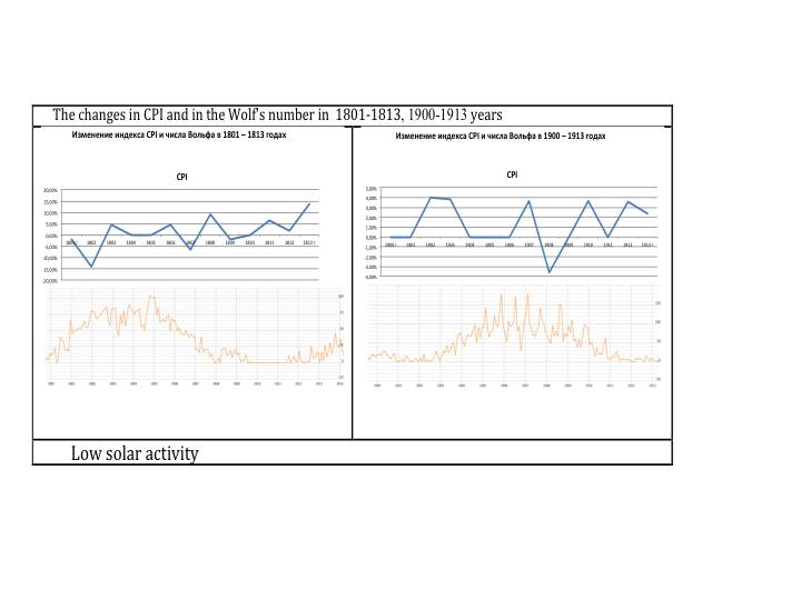 In general, changes in CPI are more correlated with the speed of rotation of Earth, with cosmic energies, which are connected with it, and less with solar activity.