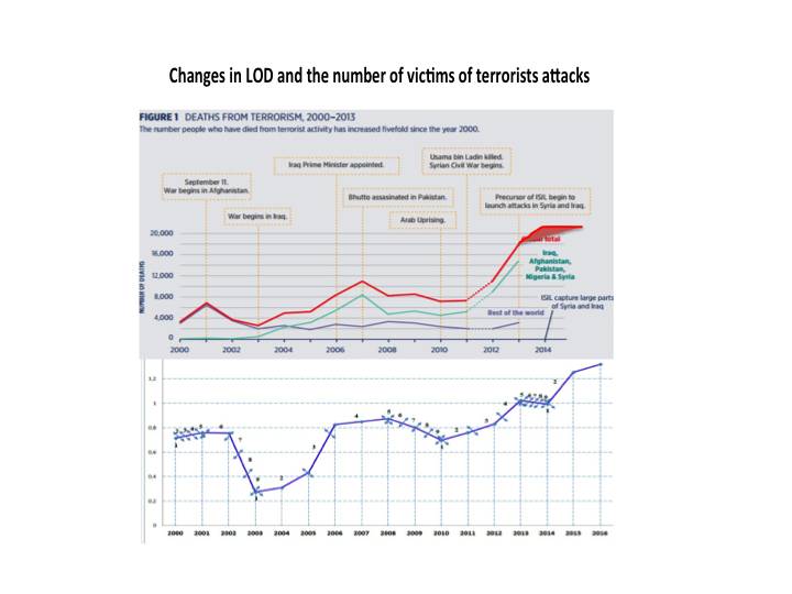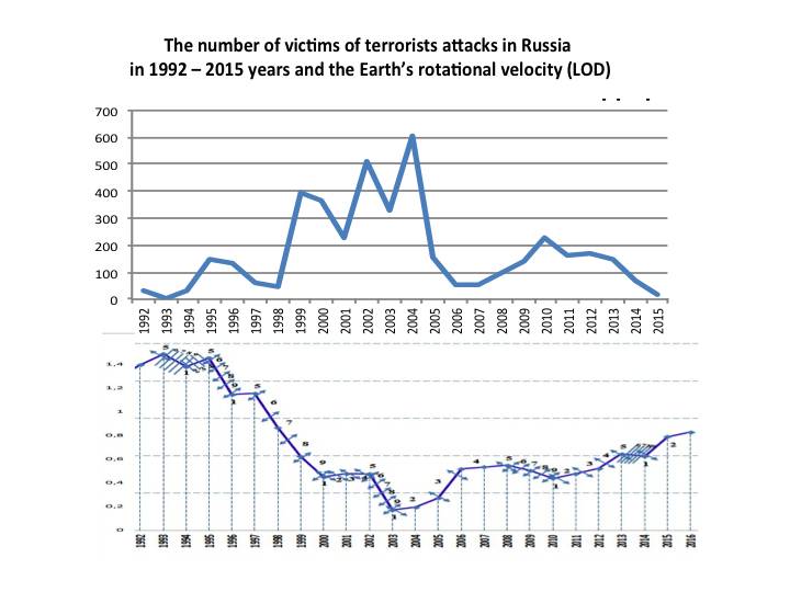 Worldwide, it is about 85% of all acts of terrorism that are associated with Islamic terrorism. They were committed in a zone of low pressure of cosmic ether or in developed countries, but by natives of the countries that fall into such zone. However, in the countries in the cosmic ether a high-pressure zone, growth of the terrorism is related to its fall.