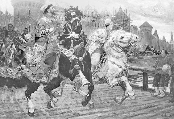 С тех пор Иван Васильевич очутился под опекой Сильвестра и в то же время сдружился с Алексеем Адашевым, одним из молодых людей, уже известных царю. Адашев случайно попал в число тех, которых Иван приближал к себе ради забавы. Это был человек большого ума и в высокой степени нравственный и честный. «Если бы, – говорит Курбский, – все подробно писать об этом человеке, то это показалось бы совсем невероятным посреди грубых людей; он, можно сказать, был подобен ангелу». Под влиянием Сильвестра Иван предался Адашеву всей душой. Сильвестр и Адашев подобрали кружок людей, более других отличавшихся широким взглядом и любовью к общему делу. То были люди знатных родов: князь Дмитрий Курлятов, князья Андрей Курбский, Воротынский, Одоевский, Серебряный, Горбатый, Шереметевы и др. Кроме того, Адашев и Сильвестр стали выбирать из толпы людей незнатных, но честных, и поверяли им разные должности. Таким образом, из детей боярских возвышались люди, какие нужны были Сильвестру и Адашеву: для этого употребили они существовавший уже обычай раздавать поместья и вотчины; а владея всеми помыслами царя, любимцы могли приближать к царю и возвышать кого хотели. Несмотря на то что в кругу людей, окруживших тогда царя, были знатные потомки удельных князей, возвышение новых людей вначале не оскорбляло их гордости. Сам Алексей Адашев, всеми уважаемый и несколько лет всеми заправлявший, был человек незнатного происхождения и небогатый. «Я из батожников его поднял, от гноища учинил наравне с вельможами», – говорил о нем впоследствии Иван.