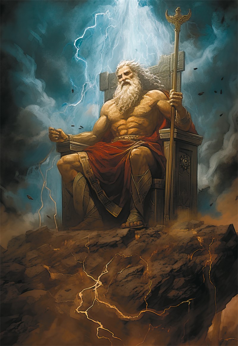 С Олимпа рассылает людям Зевс свои дары и утверждает на земле порядок и законы. В руках Зевса судьба людей: счастье и несчастье, добро и зло, жизнь и смерть. Два больших сосуда стоят у ворот дворца Зевса. В одном сосуде дары добра, в другом – зла. Зевс черпает из сосудов добро и зло и посылает людям. Горе тому человеку, которому громовержец черпает дары только из сосуда со злом. Горе и тому, кто нарушает установленный Зевсом порядок на земле и не соблюдает его законов. Грозно сдвинет сын Крона свои густые брови, черные тучи заволокут небо. Разгневается великий Зевс, и страшно поднимутся волосы на голове его, глаза загорятся нестерпимым блеском; взмахнет он своей десницей – удары грома раскатятся по всему небу, сверкнет пламенная молния и сотрясется высокий Олимп.