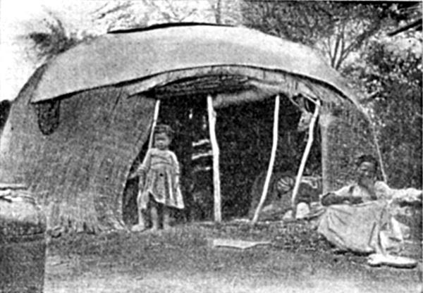 Дверь в хижине настолько низка, что в нее можно пройти только ползком. Завешивается дверь кожей. Внутри хижины вырывают яму для огня или устраивают глиняный очаг, а вокруг очага вырывают в земле неглубокие ямки для спанья.