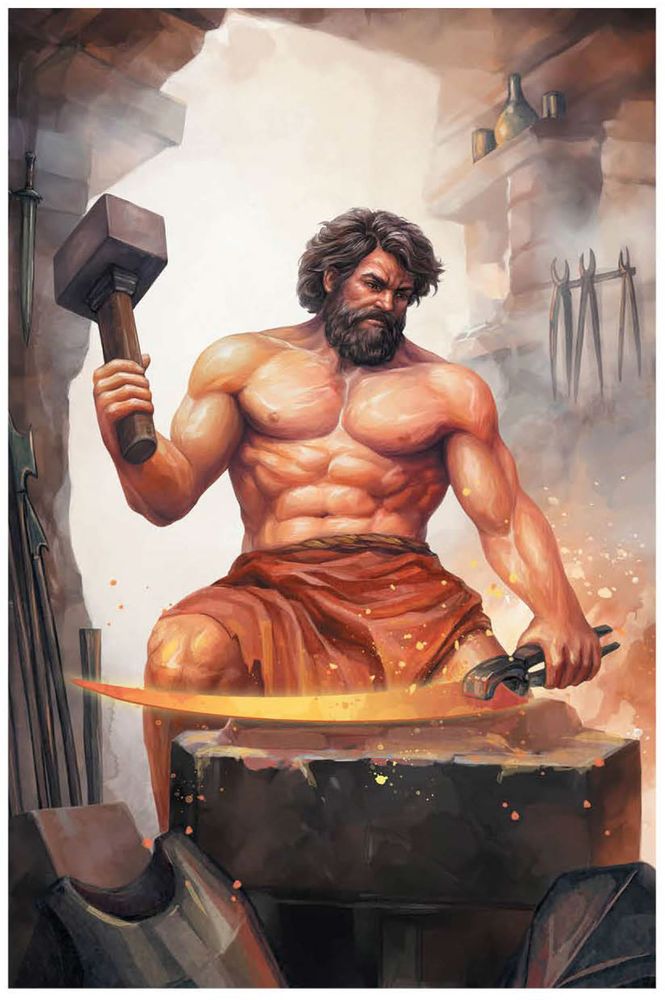 Могучий Гефест работает без отдыха в своей полной чудес кузнице.