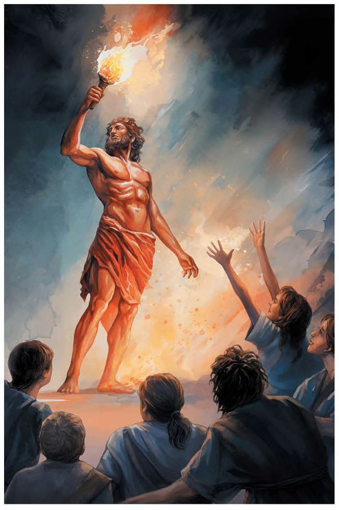 Прометей дарует людям похищенный у богов Олимпа огонь.