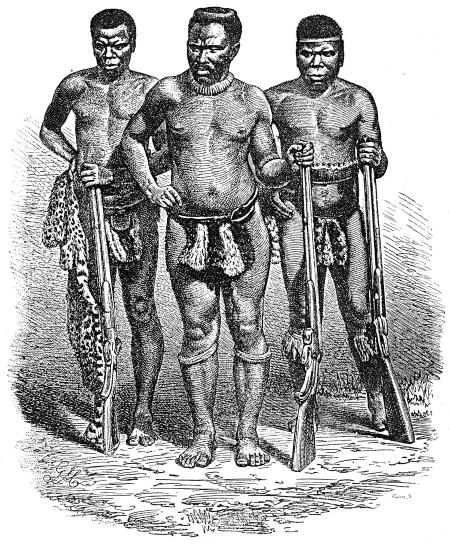 Все мужское население воспитывается для войны; с юных лет мальчиков приучают владеть оружием и обращают большое внимание на их физическое развитие. Все население распадается на три части: это ветераны, молодые солдаты и не вступившие еще в войско мальчики. Войско зулусов выступает на войну обыкновенно в сопровождении обоза. Обязанность женщин и мальчиков этого обоза – доставлять все нужное воинам, так что воины идут только со своим оружием.