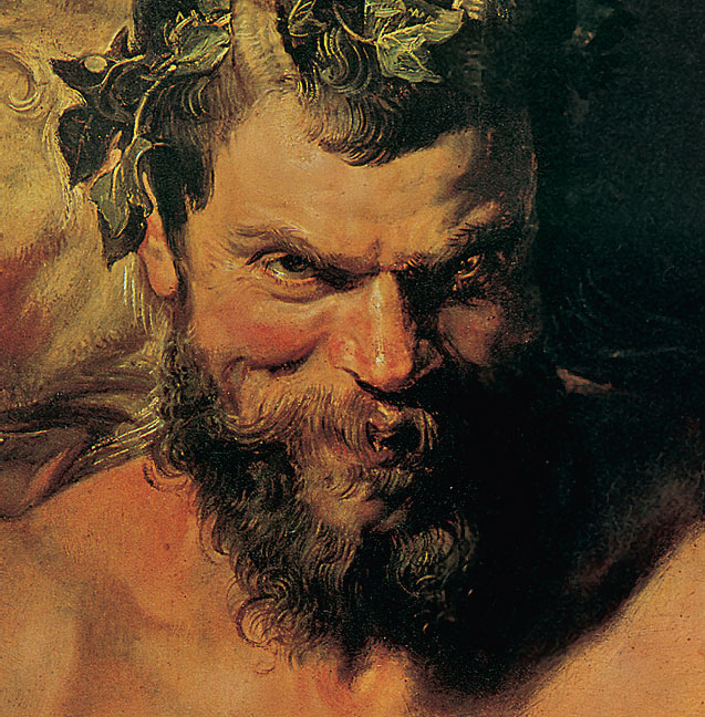 Среди свиты Диониса часто можно видеть бога Пана. Когда родился Пан, мать его, нимфа Дриопа, взглянув на сына, в ужасе обратилась в бегство. Он родился с козлиными ногами и рогами и с длинной бородой. Но отец его, Гермес, обрадовался рождению сына, он взял его на руки и отнес на Олимп. Все боги радовались рождению Пана и смеялись, глядя на него.