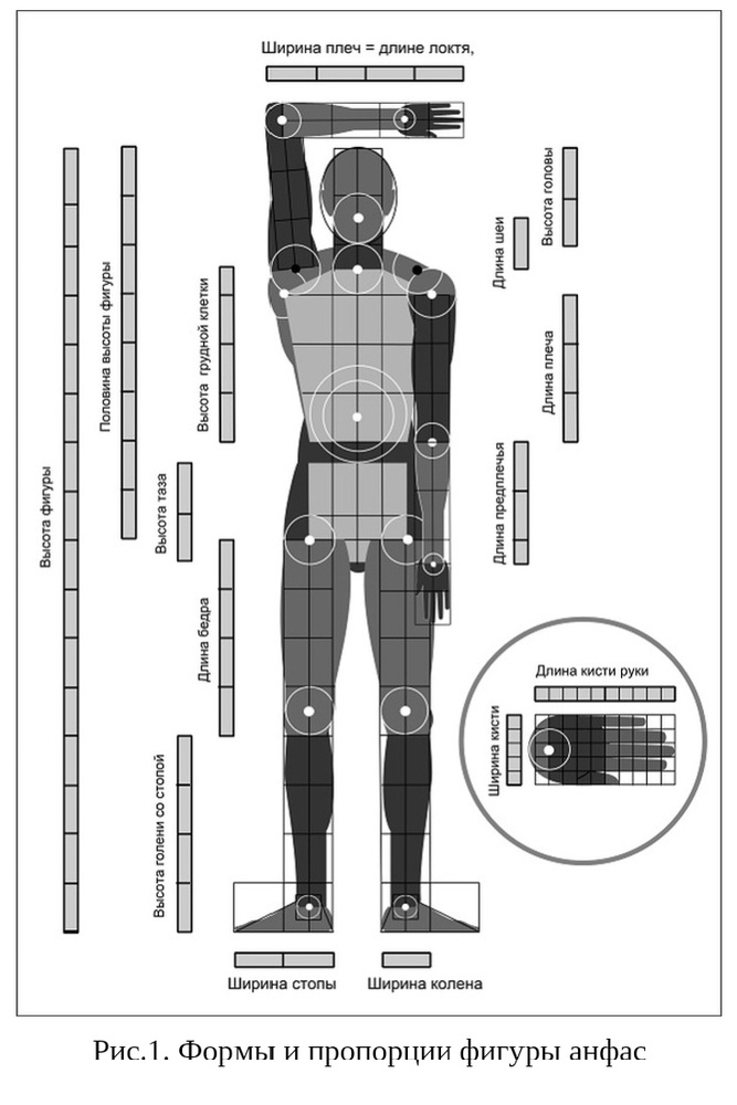 Для измерения пропорций нужна какая-то мера, мерка или, говоря более профессиональным языком, модуль. И этот модуль должен содержаться в самой фигуре: это может быть размер любой его формы.