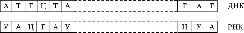 Транскрипцией называется процесс переноса генетической информации с ДНК на РНК. Информация переписывается с языка ДНК-нуклеотидов на язык РНК-нуклеотидов (рис. 1.2).