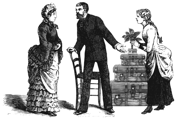 – Удивительно, что жених до сих пор не присылает за невестой карету. Кажется, уж пора бы… – говорит пожилой гость с подстриженной бородой и поправляет перед зеркалом белый галстук.