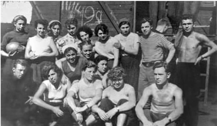 Студенты ЛГПИ в дороге на целину, Н. Ловелиус в верхнем ряду справа. Фото Ю. Туйска, 1957