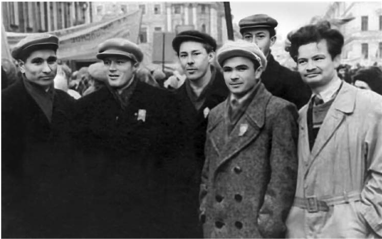 Студенты ЛГПИ им. А. И. Герцена на демонстрации, Н. Ловелиус 2-й справа, 1958