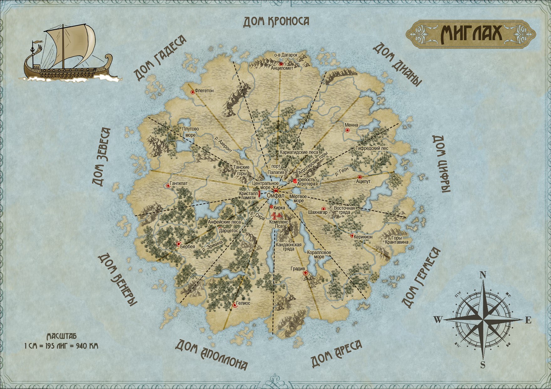 В дальнейшем, когда Первые Отцы ушли, каждый Дом возглавлялся Верховным Отцом – сильнейшим представителем своего поколения, который на исходе невероятно долгой жизни передавал свои знания и силу заранее выбранному преемнику. Девять больших Домов (Кроноса, Дианы, Цифры, Гермеса, Ареса, Аполлона, Венеры, Зевеса и Гадеса) со временем собрали под своё покровительство людей, чьи характеры и способности соответствовали природе их энергий. Сегодня Миглах – это огромный континент, который Верховные Отцы разделили на равные части, сходящиеся от периферии к центру, словно дольки лимона. Он стал местом совместной жизни девяти основных народов. Но так было не всегда. Тысячи лет истории прошли в бесчисленных спорах и стычках, переговорах и войнах, пока правители разработали и записали стабильную систему законов и правил. В незапамятные времена эти базовые императивы приняли все большие Дома и соблюдают их поныне в целях общего мира и процветания. Так появилась Конвенция Миглаха. И никто за последующие годы не нарушил её в сколько-нибудь значимой мере, потому что каждый Дом обладал своей собственной частью Силы, не подвластной народам других Домов.