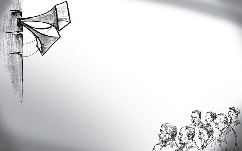 Через темные сени я вхожу в большую комнату, совсем пустую. Жалкая мебель, комод с фотографиями, над ним на стене рупор. Конец фразы диктора: