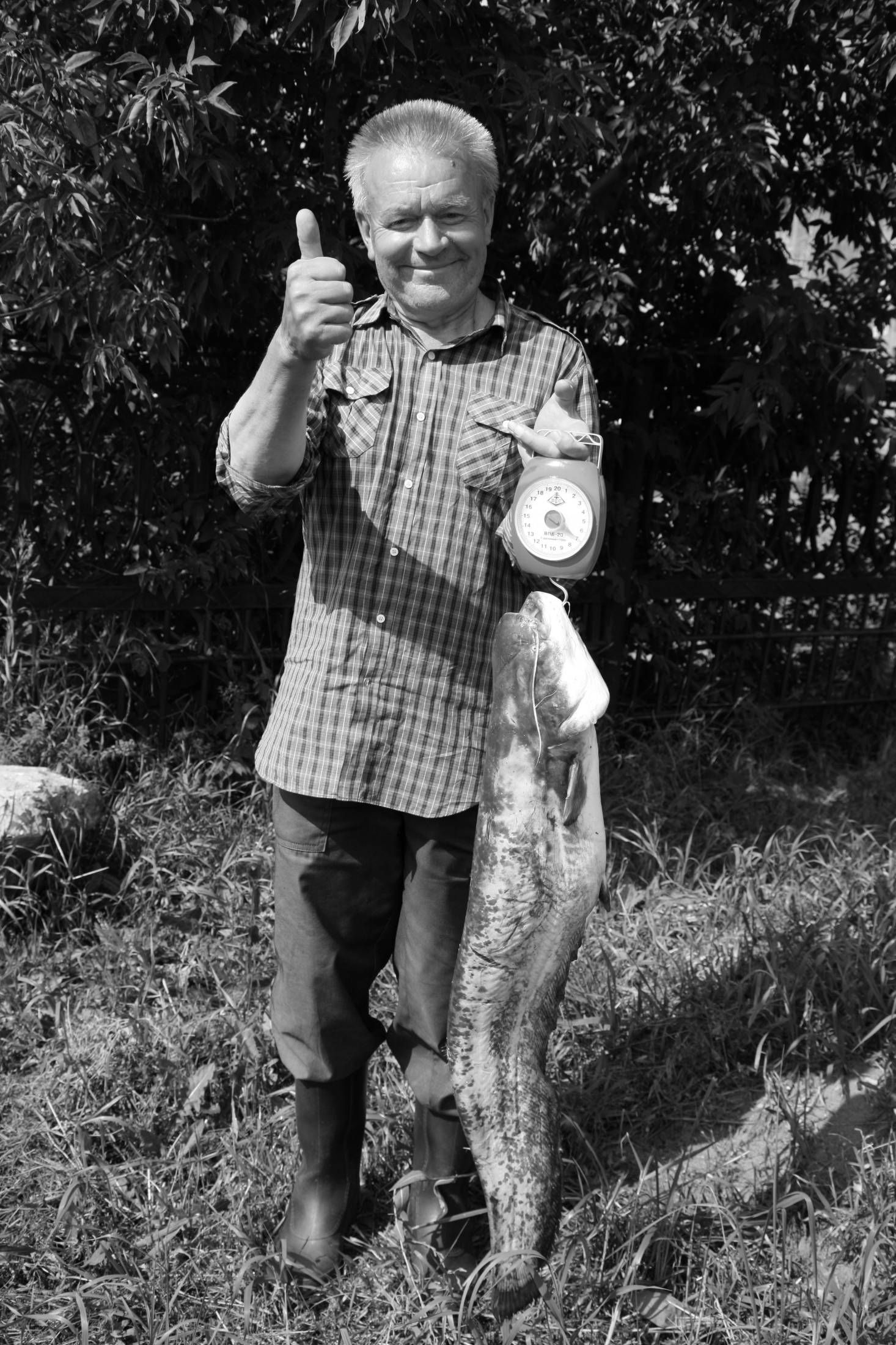 Ее голова была почему-то всунута в большое оцинкованное ведро. Нас поразило то, что в ведре умещалась с трудом лишь голова рыбины, а туловище с большими, как весла, плавниками и хвостом тянулось метра на полтора по земле. Щуку поймали в реке бреднем. Из мотни снасти ее долго боялись вынимать. Решились на это дело лишь после того, как кто-то из умельцев, подкравшись, успел «садануть ей под сердце финский нож». Самые любопытные принесли из деревни старинный безмен, заменявший селянам самые точные весы, в том числе и аптечные. Щука потянула на 16 кг.