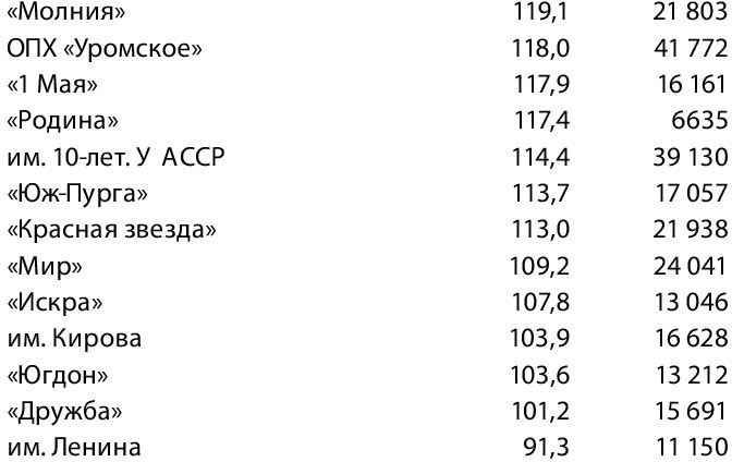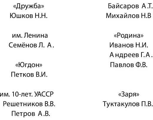 Пусть простят меня те, кого я не назову. Это сделать просто невозможно, так как моя трудовая биография складывалась в соавторстве с более 500 малопургинцами. О мелиораторах я подробно рассказывал в районной газете «Маяк» в 2017 году в №№ 52 и 78. Пусть эти статьи будут приложением к настоящему изданию. а вот о тружениках полей и ферм «Юж-Пурги» позволю себе рассказать подробнее и в первую очередь о передовиках, о тех, кто был опорой хозяйства.