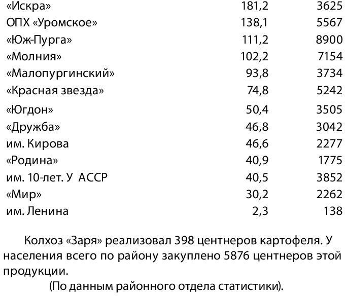 Истекший год успешным был и для овощеводов района. При плане 30 100 центнеров реализовали 40 301 центнер капусты и столовой свеклы. Из проданной продукции две трети приходится на долю колхоза «1 Мая». Остальная часть из реализованных овощей доставлена на базы республики и в торговлю колхозом «Искра».