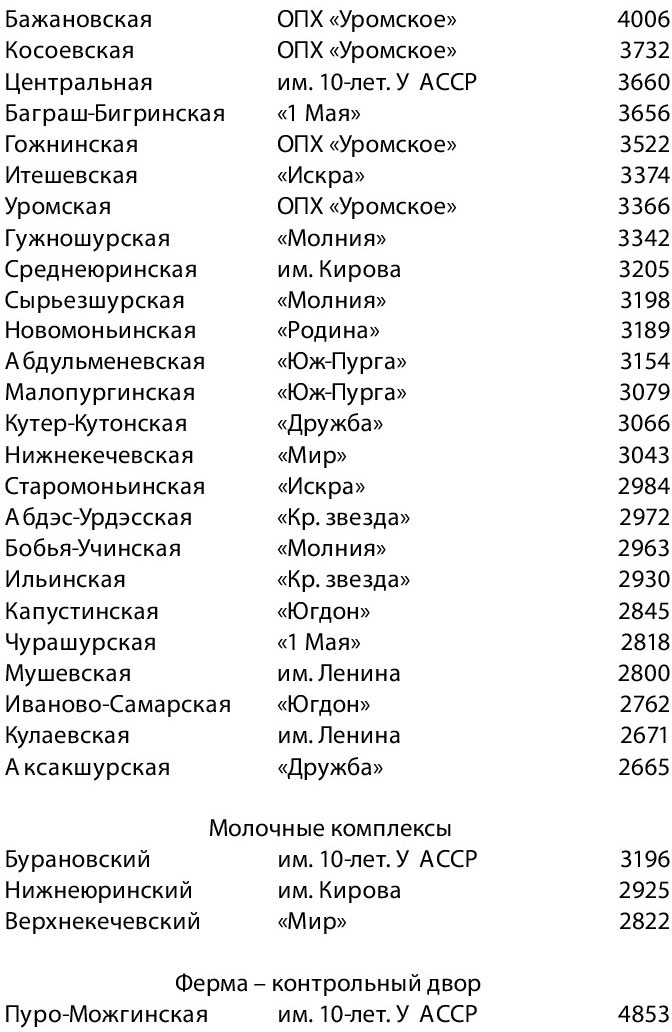 Все хозяйства района, за исключением колхозов имени Кирова и «Мир», превысили уровень предыдущего года по продаже молока. Значительно улучшили этот показатель колхозы «Молния» и ОПХ «Уромское».