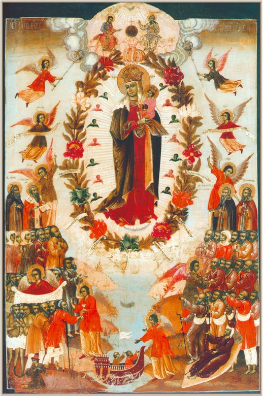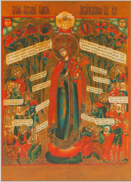 Невозможно исчислить всех наименований, которыми ласкающееся дитя осыпает любимую мать. Точно так же неисчислимы и те изображения, в которых Православная Церковь представляет взорам и сердцу младенчествующих во Христе образ Той, в Которой все, прибегающие с детскою любовию, обретают нежнейшую, попечительнейшую Матерь. Эти изображения, в которых, собственно говоря, переводятся на полотно восторги благочестивого чувства, так красноречиво выражающиеся в наших церковных песнях, можно назвать «лирическими». Каждое из них есть не что иное, как воплощенное в чертах и красках приветствие любви, преданности, молитвы. Сверх того нельзя не заметить, что все они отличаются характером нежного, растроганного чувства, ищущего потопить свои земные скорби и печали в лучах небесного идеала, представляемого благодатным ликом Святой Пренепорочной Девы. Это доказывают самые наименования, принятые Церковью для разных изображений Богоматери; как-то: Всех Скорбящих Радость, Утоление Печалей, Взыскание Погибших и т. п. На дне морей, раздираемых свирепыми бурями, зарождается драгоценный перл. В тайниках души, истерзанных пытками скорбей, воспитывается молитва и упование, вера и любовь, поэзия и искусство…