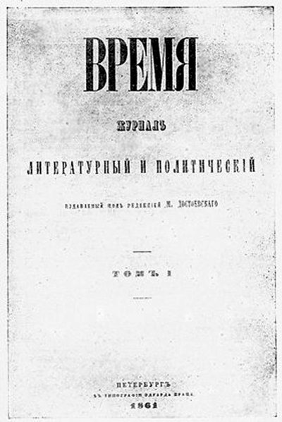 После возвращения в Петербург также начинается журнальная и редакторская деятельность Достоевского. Вместе с братом Михаилом (который к тому времени был уже довольно известным критиком и беллетристом) он основывает журнал «Время», ставший за короткое время одним из самых популярных периодических литературных изданий. Именно на страницах «Времени» появляются произведения, которые возвращают и увеличивают славу уже совсем почти забытому автору «Бедных людей», – «Униженные и оскорбленные» и «Записки из Мертвого дома»… Но вскоре, весной 1863-го, журнал «Время» был запрещен, а основанный через некоторое время на его пепелище новый журнал братьев Достоевских «Эпоха» по разным причинам уже успеха такого ни читательского, ни, соответственно, финансового не имел, и через год его издание пришлось прекратить.