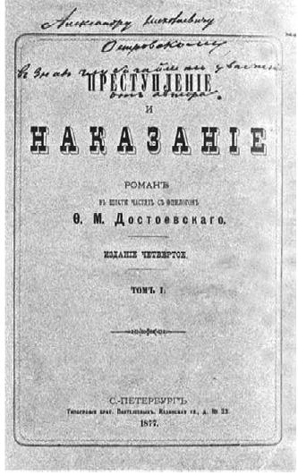 Автограф Достоевского (дарственная надпись А. Н. Островскому) на издании «Преступления и наказания» 1877 г.