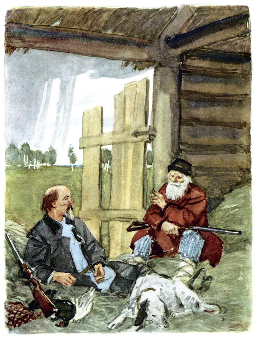 IВ августе, около Малых ВежейС старым Мазаем я бил дупелей.Как-то особенно тихо вдруг стало,На небе солнце сквозь тучу играло.Тучка была небольшая на нём,А разразилась жестоким дождём!Прямы и светлы, как прутья стальные,В землю вонзались струи́ дождевыеС силой стремительной… Я и Мазай,Мокрые, скрылись в какой-то сарай.Дети, я вам расскажу про Мазая.Каждое лето домой приезжая,Я по неделе гощу у него.Нравится мне деревенька его:Летом её убирая красиво,Исстари хмель в ней родится на диво,Вся она тонет в зелёных садах;Домики в ней на высоких столбах(Всю эту местность вода понимает,Так что деревня весною всплывает,Словно Венеция). Старый МазайЛюбит до страсти свой низменный край.Вдов он, бездетен, имеет лишь внука,Торной дорогой ходить ему – скука!За сорок вёрст в Кострому прямикомСбегать лесами ему нипочём:«Лес не дорога: по птице, по зверюВыпалить можно». – А леший? – «Не верю!Раз в кураже я их звал-поджидалЦелую ночь, – никого не видал!За день грибов насбираешь корзину,Ешь мимоходом бруснику, малину;Вечером пеночка нежно поёт,Словно как в бочку пустую удодУхает; сыч разлетается к ночи,Рожки точёны, рисованы очи.Ночью… ну, ночью робел я и сам:Очень уж тихо в лесу по ночам.Тихо, как в церкви, когда отслужилиСлужбу и накрепко дверь затворили,Разве какая сосна заскрипит,Словно старуха во сне проворчит…»Дня не проводит Мазай без охоты.Жил бы он славно, не знал бы заботы,Кабы не стали глаза изменять:Начал частенько Мазай пуделять[1].Впрочем, в отчаянье он не приходит:Выпалит дедушка – заяц уходит,Дедушка пальцем косому грозит:«Врёшь – упадёшь!» – добродушно кричит.Знает он много рассказов забавныхПро деревенских охотников славных:Кузя сломал у ружьишка курок,Спичек таскает с собой коробок,Сядет за ку́стом – тетерю подманит,Спичку к затравке[2] приложит – и грянет!Ходит с ружьишком другой зверолов,Носит с собою горшок угольков.«Что ты таскаешь горшок с угольками?»– Больно, родимый, я зябок руками;Ежели зайца теперь сослежу,Прежде я сяду, ружьё положу,Над уголёчками руки погрею,Да уж потом и палю по злодею!«Вот так охотник!» – Мазай прибавлял.Я, признаю́сь, от души хохотал.Впрочем, милей анекдотов крестьянских(Чем они хуже, однако, дворянских?)Я от Мазая рассказы слыхал.Дети, для вас я один записал…IIСтарый Мазай разболтался в сарае:«В нашем болотистом, низменном краеВпятеро больше бы дичи велось,Кабы сетями её не ловили,Кабы силками её не давили;Зайцы вот тоже, – их жалко до слёз!Только весенние воды нахлынут,И без того они сотнями гинут, –Нет! ещё мало! бегут мужики,Ловят, и топят, и бьют их баграми.Где у них совесть?.. Я раз за дровамиВ лодке поехал – их много с рекиК нам в половодье весной нагоняет –Еду, ловлю их. Вода прибывает.Вижу один островок небольшой –Зайцы на нём собралися гурьбой.С каждой минутой вода подбираласьК бедным зверькам; уж под ними осталосьМеньше аршина земли в ширину,Меньше сажени в длину.Тут я подъехал: лопочут ушами,Сами ни с места; я взял одного,Прочим скомандовал: прыгайте сами!