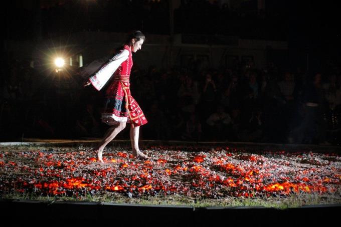 17–летняя Мария, «невысокая, худощавая, с распущенными волосами, одетая в длинную белую рубашку из полотна», поклонилась присутствовавшим и легла над горящими поленьями на металлические прутья, уже раскалившиеся в огне. Прутья опирались на два металлических же треножника, ставших опорами для головы и стоп девушки. Пламя быстро охватило ее тело. Испуганный шепот людей постепенно стих, так как всем стало ясно, что жар не вредит ей. Она лежала так почти три четверти часа, изредка меняя положение. В конце концов легла лицом вниз.