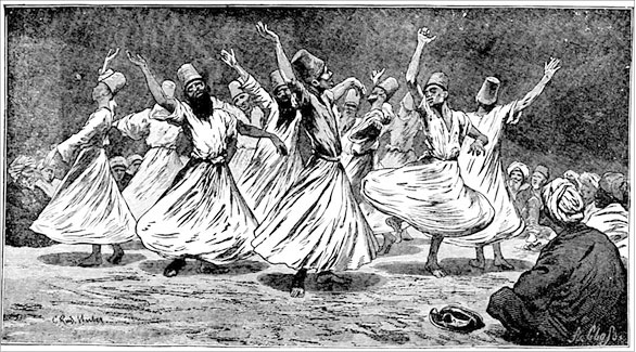 К одной из самых интересных сект дервишей относится орден мевлеви, более известный как танцующие, или крутящиеся, дервиши. Согласно общепринятому мнению, этот орден был основан великим персидским суфием, поэтом и философом Джалал ад-дином Руми (1207–1273 гг.). Наблюдателей поражает удивительная способность вертящегося дервиша кружиться с невероятной скоростью, а затем неожиданно останавливаться, наклоняться и поднимать булавку. Дервиш способен невероятно долго продолжать свой танец, не испытывая при этом никакого головокружения.