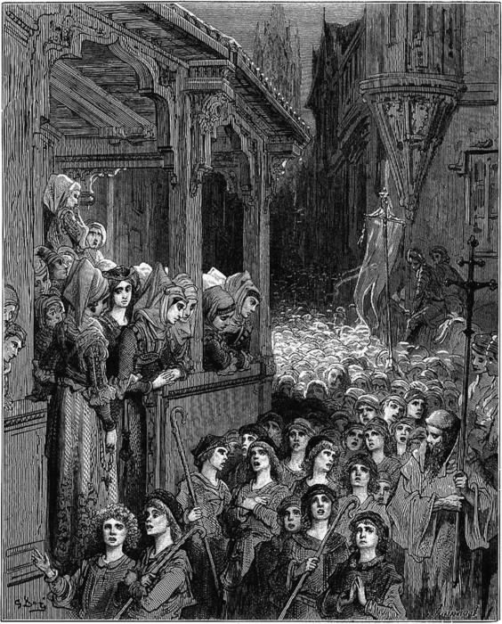 В самом конце XII века для борьбы с сектантами учреждается инквизиция. Появляются официально разрешенные секты – орден францисканцев (1210) и орден доминиканцев (1216). Казалось, весь христианский мир пришел в движение, спеша избавиться от грехов и обрести утраченную было веру. Поколение фанатичных родителей породило поколение обезумевших детей.