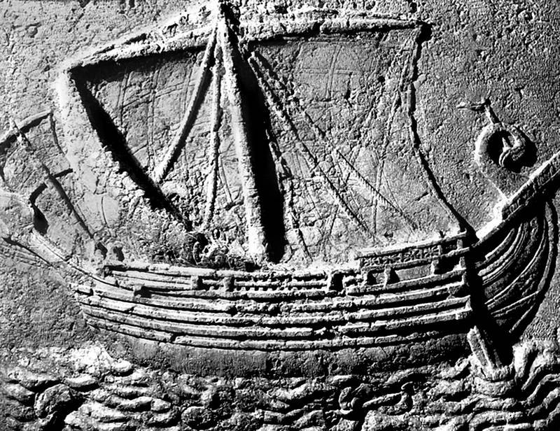 Нет, что-то все-таки дошло до нас, и даже этого малого достаточно для того, чтобы понять, что для достижения своих целей финикийцы были готовы на многое. «В Тире было много верфей, на которых кроме самих тирян работали выходцы из других финикийских городов – Библа, Сидона и Арвада, – рассказывает И. Шифман. – Работа на верфях почти не прекращалась – ведь кораблей нужно было много». Корабли, предназначавшиеся для перевозки грузов на сравнительно небольшие расстояния, в пределах восточной части Средиземноморского бассейна, строились, видимо, по образцу рыбачьих лодок. Древнейшее изображение таких судов найдено в египетской гробнице середины II тысячелетия. Это были одномачтовые суда с небольшой осадкой, высоко поднятым носом и кормой и огромным четырехугольным парусом. Основу судна составляла продольная балка – киль, на который наращивались шпангоуты, обшивавшиеся досками. Фальшборты делались несплошными. Каких-либо продольных или поперечных связей еще не было; фактически борта были соединены палубным настилом. Нос и корма образовывались с помощью специальных балок, прикреплявшихся к килю и располагавшихся вертикально по отношению к нему. Эти балки (форштевень в кормовой и ахтерштевень в носовой части) поднимались значительно выше бортов и палубы. Парус закреплялся на двух реях; нижняя рея была подвешена на многочисленных тросах и, когда парус свертывался, поднималась наверх. Такому парусу можно было придать любое положение по отношению к корпусу судна, что позволяло морякам в случае необходимости маневрировать. На корме находилось рулевое весло. Используя попутные течения, на таком судне можно было проделать путь от устья Нила до мыса Кармел за одни сутки; на обратную дорогу требовалось от восьми до десяти суток.