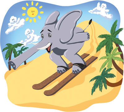 В облаке пыли, отдаляясь от строителей в сторону джунглей, маячил круп африканского слона, задорно трубившего в свой хобот. В противоположной стороне вверх вылетали зверушки, демонстрируя кульбиты, и падали обратно в облако пыли. Это были фристайлисты – лыжные акробаты. Кто они такие – мы вскоре узнаем.