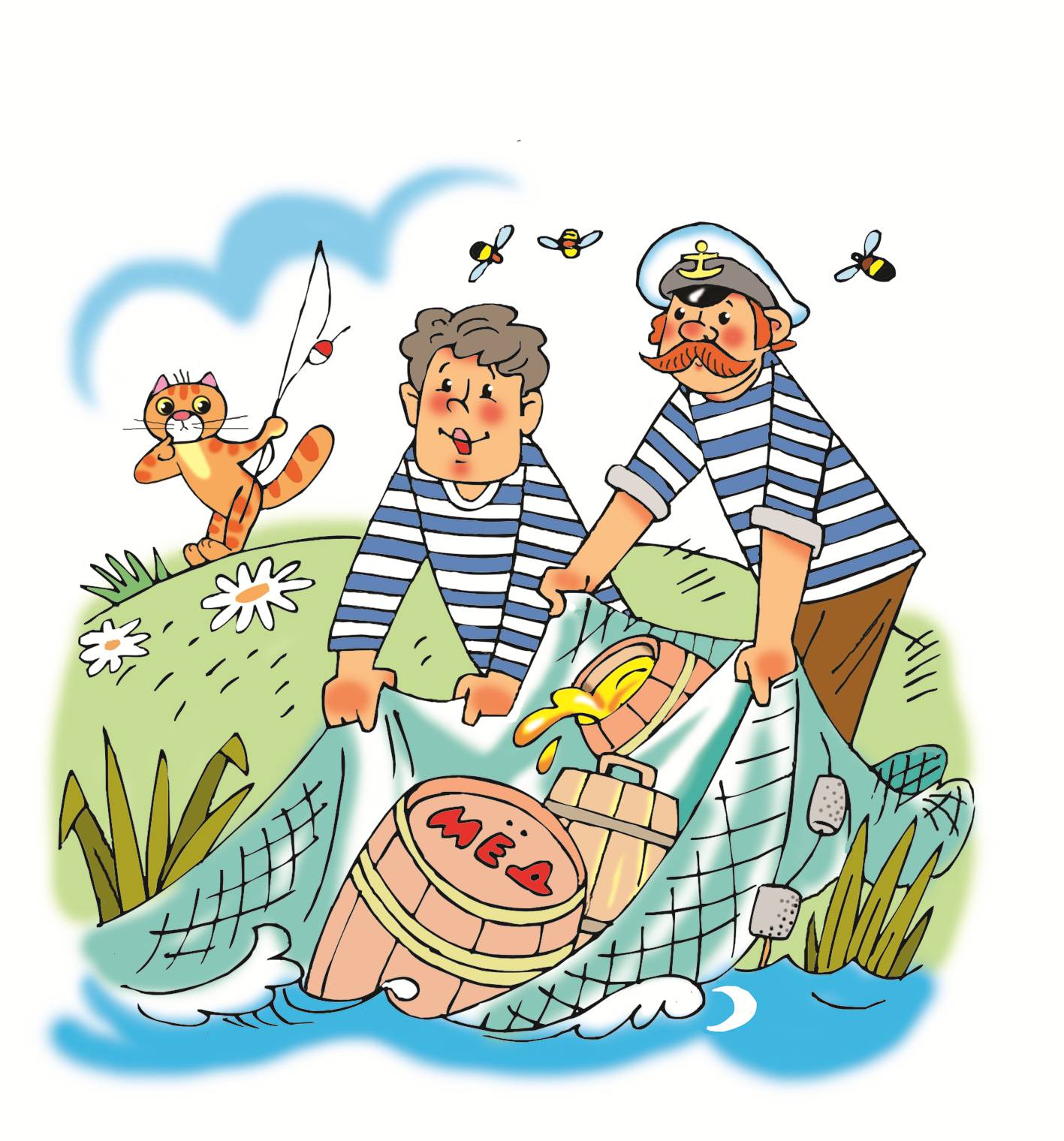 Тащат невод полон мёда.