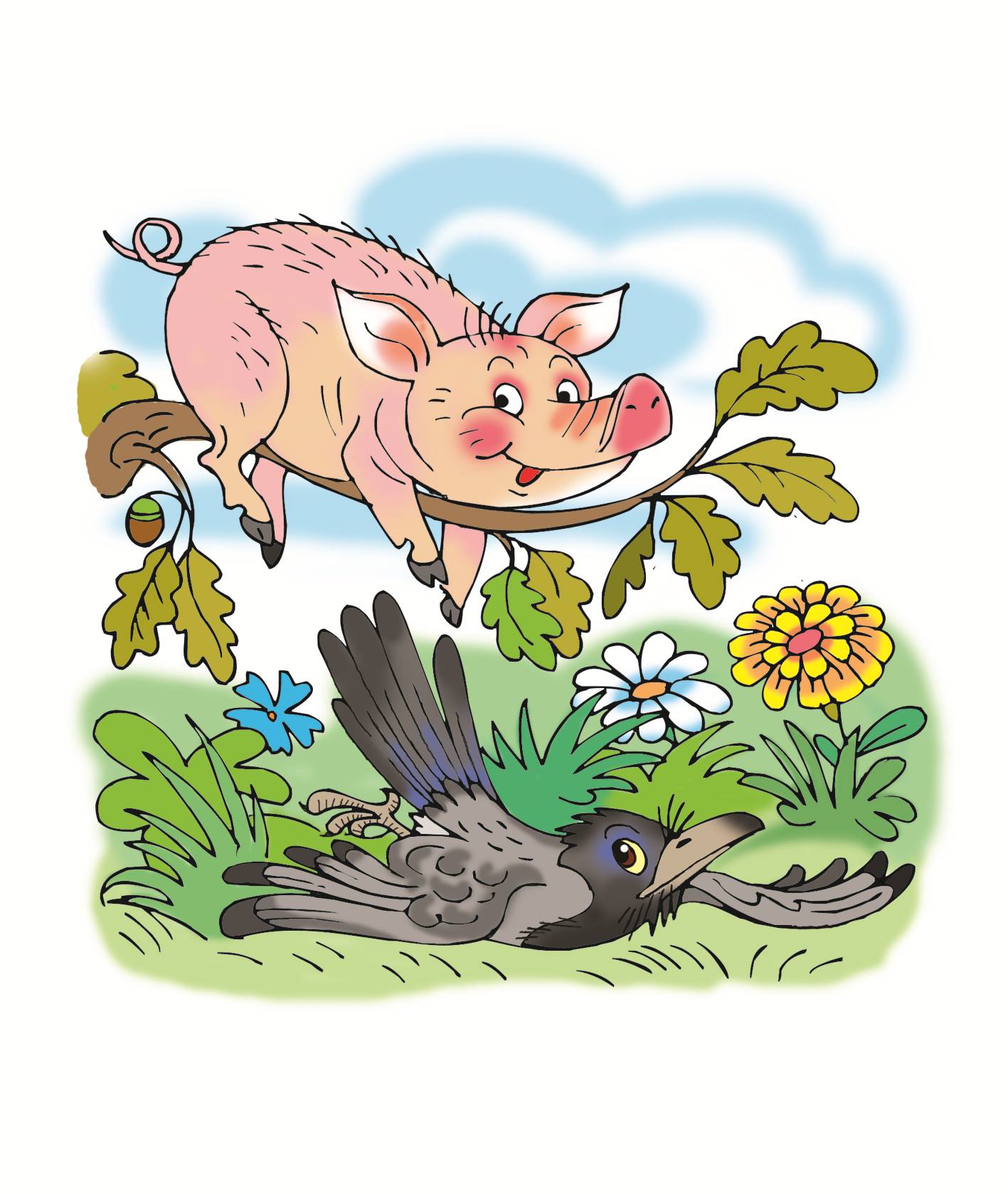 По траве ползёт ворона,
