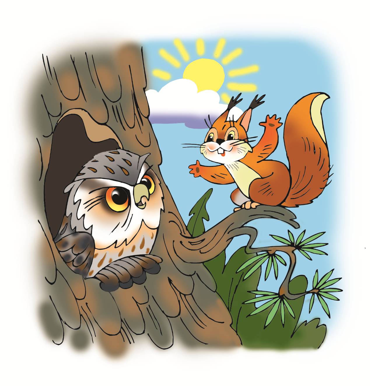 Выглянула в полночь из своего дупла Бел-ка, увидела Сову и говорит: