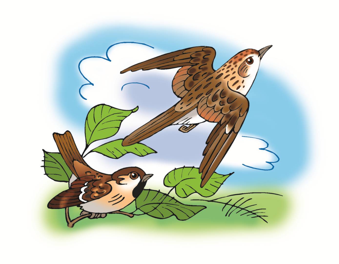 – Воробей, а почему ты роешься в куче мусора, если такой родовитый? – спросила его невзрачная птичка и вспорхнула в высокое небо, откуда донеслось до восхищённой стаи птиц удивительное и чарующее пение Жаворонка.